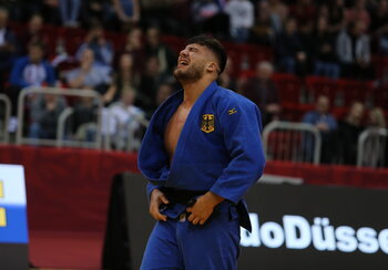 Johannes Frey vom JC 71 Düsseldorf sah im Achtelfinale der Klasse über 100 kg gegen Guram Tushishvili aus Georgien, Zweiter der Olympischen Spiele von Tokio und Weltmeister von 2018, schon fast wie…